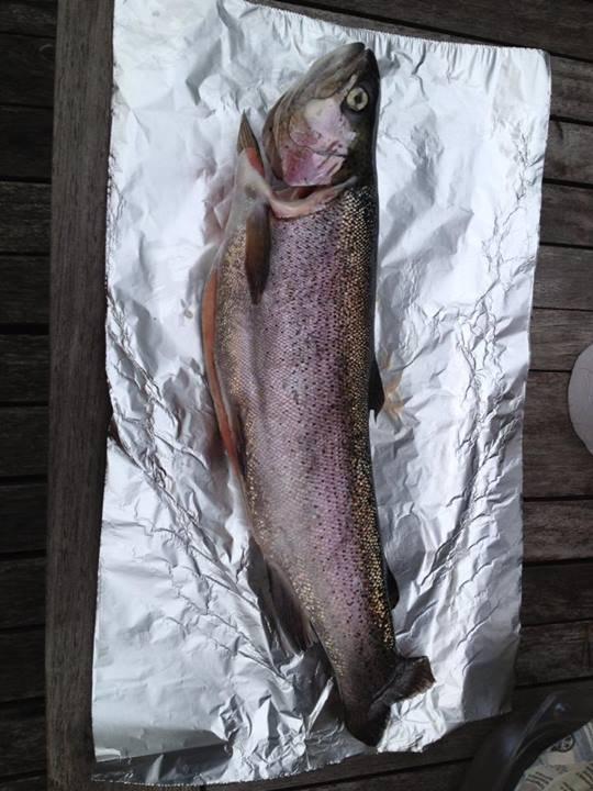 Hämärän tultua kalat alkoivat pintoa, mutta eivät käyneet kiinni perhoihimme. 3 päivää kalastettiin ja aina olivat kalat vastarannalla tai keskellä vitaa, jonne ei ylettänyt heittää. Tämä yksilö nousi ruokapöytään asti.