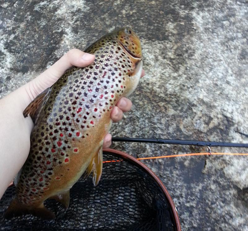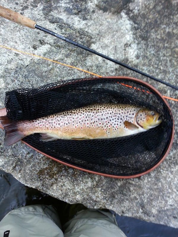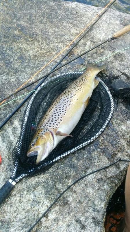 Lähdettiin kaverin kanssa kokeilemaa Tainiolle josko sieltä irtoisi kalaa. Kala oli mukavasti syönnillään ja tapahtumia oli jonkin verran. Ylös asti ei kalaa heti tullut, mutta jonkin ajan vispaamisen jälkeen alkoi kalaakin nousemaan. Kaveri sai kolme mukavaa +45cm taimenta ja itse tasan 45cm taimenen, joka olikin minulle ensimmäinen taimen perhostamalla. Tainion alueen taimen alamitta on 40cm mutta kaikki kalat saivat vapauden kuvien oton ja mittauksen jälkeen.
