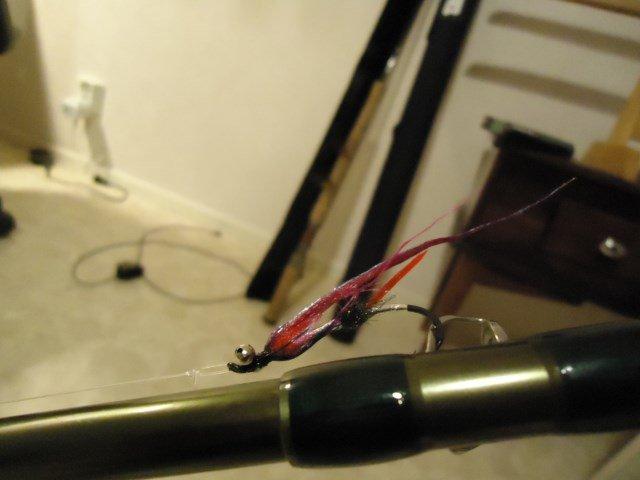 Lähdin iltapäivällä kävelylle, piti kopata onki mukaan. Vettä piisaa, jossain kohti liikaakin joten kalastus, jos ei nyt vaikeaa, niin ainakin haastavaa. Katselin kohdan mikä "toimii" yleensä ja perho sinne kuikuilemaan... tärähti heti kun saapu pelipaikalle. Kova vastus niin pieneksi ja sotki itsensä rantapusikkoon. Ajattelin että sinne jäi mutta sai itsensä irroitettua ja joutui haaviin. Nakkelin vielä aikani ja kala kävi koppaamassa mutta ei pysynyt. Rupes satamaan joten lopetin. Ottipelinä tälläkertaa tommonen "peltirunkonen" mulkosilmä jos sini-pinkki siipi(kuva3). Kalaa on joessa kivasti joten suosittelen kalaan tulemista.