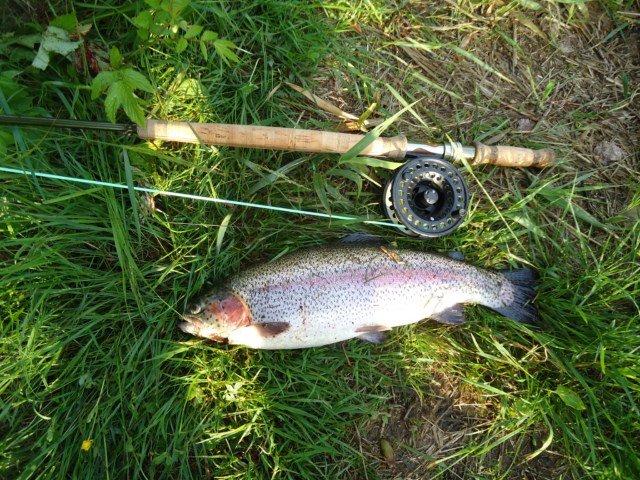 Aamulla koski usvassa ja testin aiheena uusi kevyt keppi (5/6) ja siihen siima. Vapa toimi ihan ok, mutta noin kevyenä hieman tunnoton. On kovasti aikaa siitä kun on kädessä ollut kokotoiminen. Aloitin villasukalla (ei itseasiassa mukana kuin yks perho ja siitä muutama versio) ja uittelin sitä laskun verran. Nix action. Vaihdoin toisen version siimaan, mutta jäin sitten haaveilemaan ja meinas kalastus jäädä kun nautiskelin maustettua sadevettä ja tupakoin... tais olla puolisen tuntia kontemplaatiota siinä (kuva 1). No "heräsin" viimein ja tein toisen laskun... niskalla sitten kala kävi kiinni ja oli naurussa pitelemistä kun pehmeä vapa väsytti kuin itsestään otuksen, en meinannut uskoa itse. Jokatapauksessa kala rantaan ja osoittautui normipotilaaksi, jotain kilon ja puolentoista välillä. Juhannusaaton kala. Polttelin siinä aikani ja keräilin kimpsut kasaan ja kotia. Ahneella kun on tunnetusti likanen loppu.