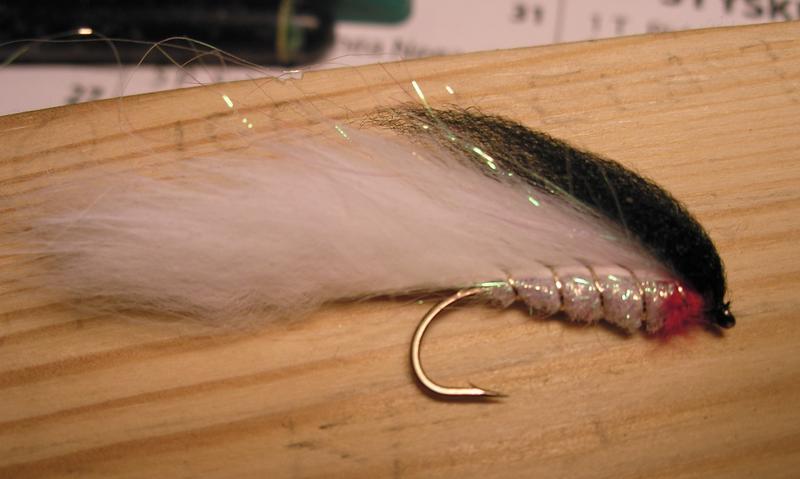 kehitin itse tälläisev valkoisen salakkaa esittävän zonker perhon.