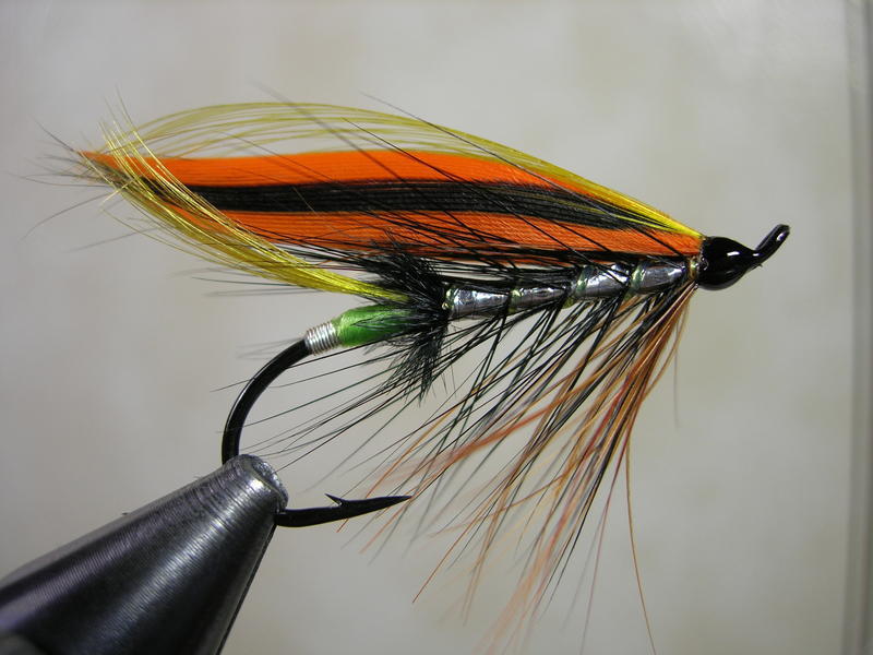 Joskus se pitkähäkiläinen malli on ollut reissun killeriperho. Jos nyt asetun lohen asemaan, niin tuo vihreä perä sopii mielestäni paremmin kuin oranssi. Se tuo lisäkontrastia ja uuden elementin perhon näkyvyyteen. Jos vaihtaa ajattelisi, niin veren punainen tai viininpunainenkin voisi olla parempi suuntaus kuin perhon yleisväriin katoava oranssi. Joka tapauksessa kehittelemisen arvoinen malli ja kannattaa liottaa lohipoolissa.