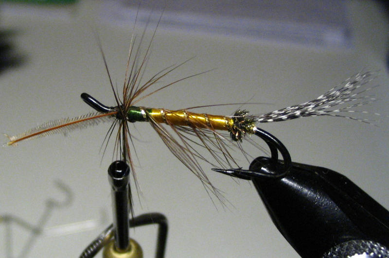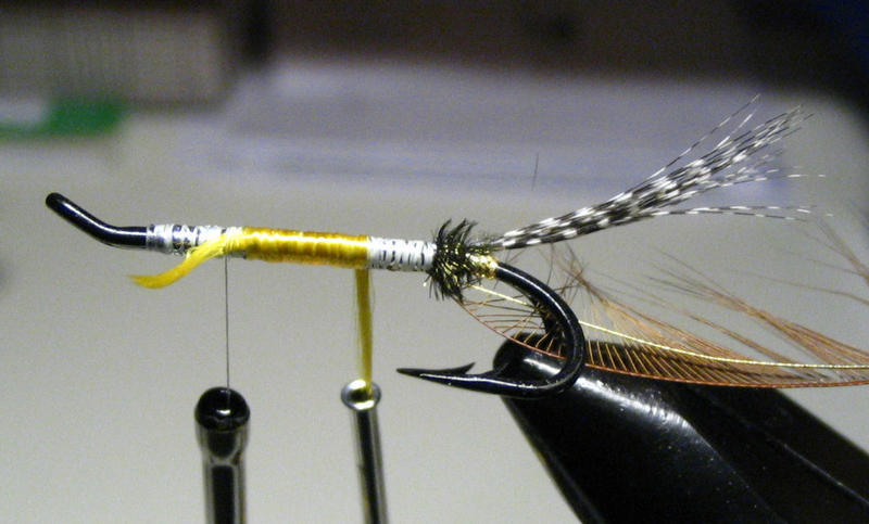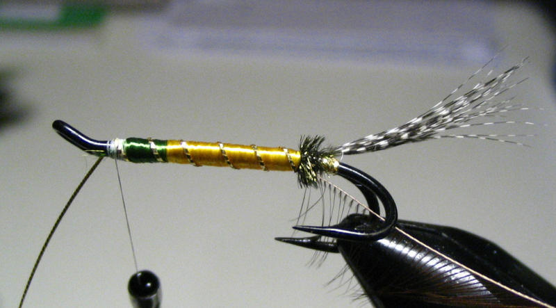 On niissä vaan lohiperhon sitomis tavoissa/tyyleissä paljon eroja! Itselle opetettu tyyli poikkeaa tuosta monella tavalla! Esim. En koskaan pohjusta koukkua etukäteen. Pohjustus tulee automaattisesti kun kiinnittää kierteen ja lukitsee pyrstön, vyön, ym. ym. Varsinkin silloin kun tehdään silkki/tinseli runkoja! Saa helposti tasaisen. Tinselin olisin laittanut vasta just ennen silkkiä, että siitä olisi saatu suurin hyöty! Nyt se jää sidontalangan alle. Runkosilkin opettivat aina puolittamaan. Eikä koskaan spigotista! Tulee kierrettä. Mutta niin tai näin, erittäin kalastavan näköinen sidos! Pääsis minun siiman päähän, helposti!