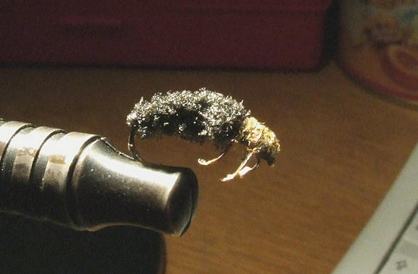 eli painotus on lyijylanka kierrettynä rungolle. koukkua on kans vähän modattu tässä, eli taivutettu tuolta 0,5cm silmän takaa alaspäin. ei ole pakollinen