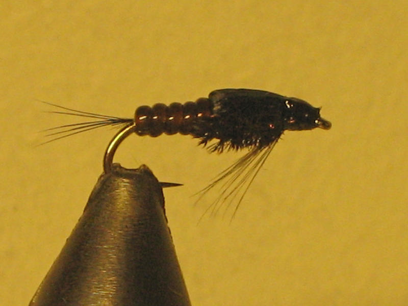 marabou pyrstö on ehdoton tälläiseen nymfiin sillä ainakin kirjolohet tykkäävät perhosta enemmän. omisssani on aina marabou pyrstö