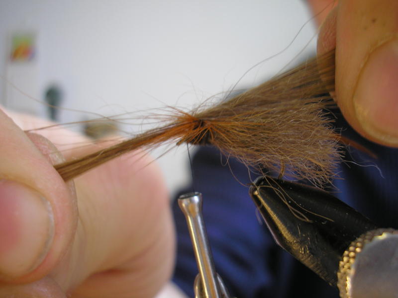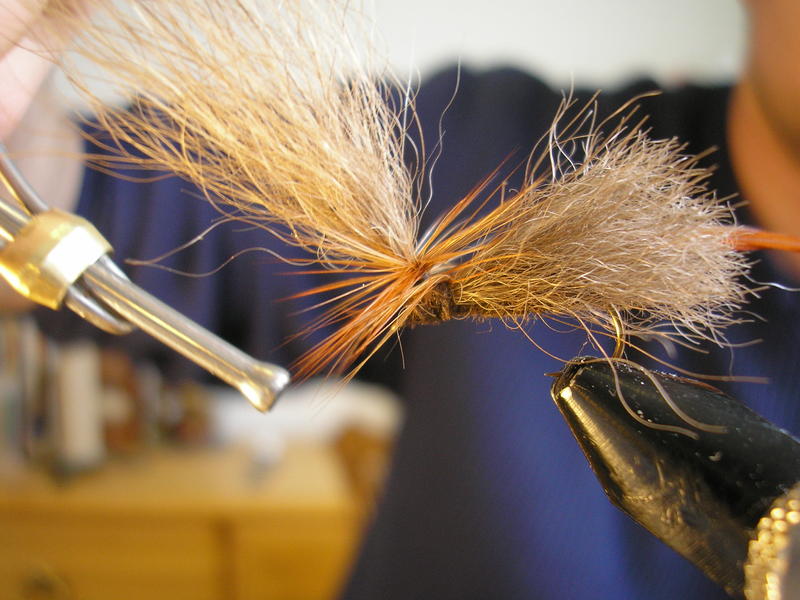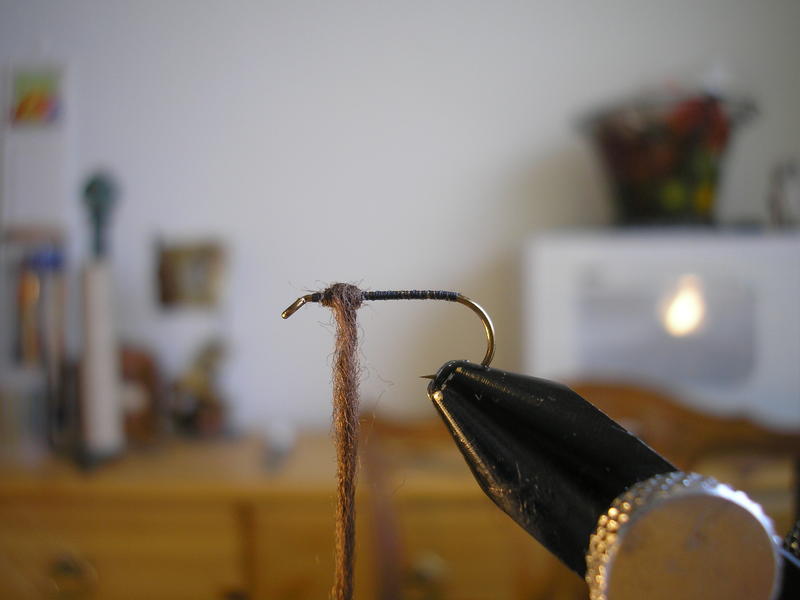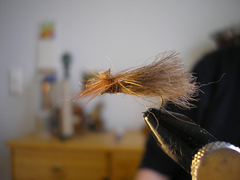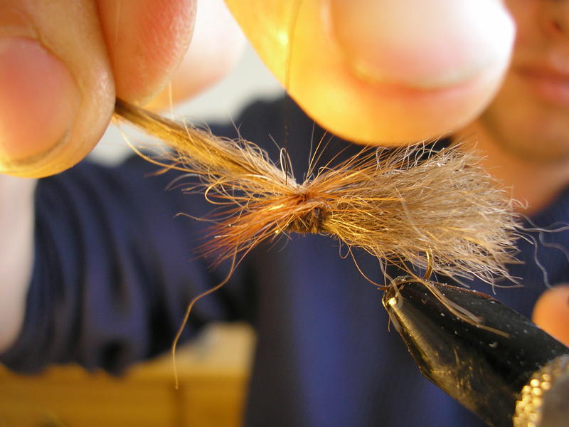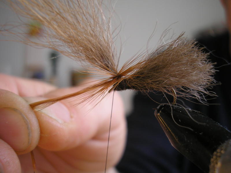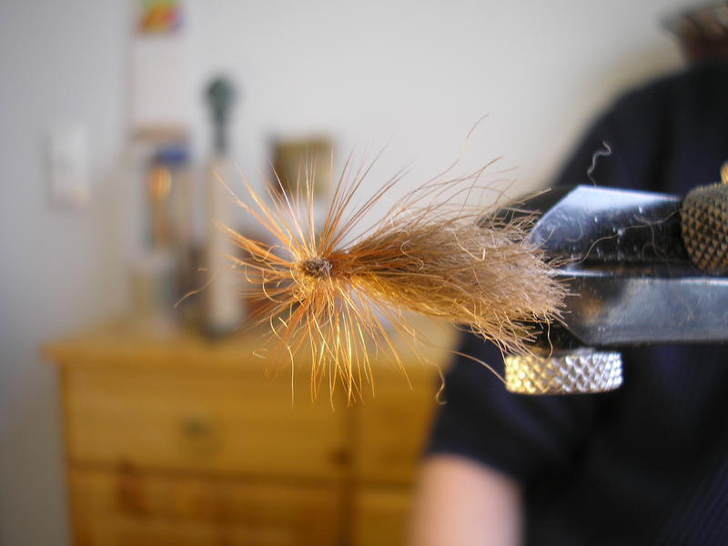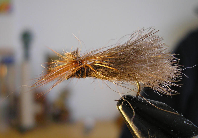 Runko on mielestäni ok. Ehkä olisin ko. perhoon tehnyt kuitenkin hieman ohuemman rungon oman silmän, en niinkään kelluvuuden, kannalta. Kun rungon kiertää tiiviiksi, kuten tässä karhupinturissä, niin se ei ime vettä samalla lailla kuin ilmava runko. Pintureihin yritän aina tehdä tiiviit rungot. (pl. emergentit tai vastaavat)