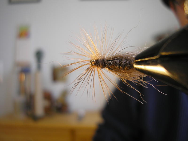 Mut yks mihkä kiinnitin huomion, oli toi rungon vahvuus ja sen tiiviys. Jos (mun mielestä)runko ois ohkasempi jäis se aina siihen asentoon paremmin(pinnalle) mihkä sitä toivookin, koska toi siipi on karhua käytät varmastikkin kellunta ainetta ja ton siiven tarkotushan on pitää perhoa pinnalla häkilän kanssa.