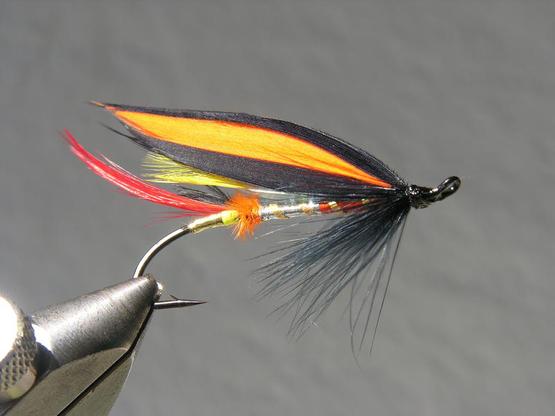 Ihan mukavat värit on perhossa. Kurkkuhäkilä on mielestäni mukavan tuuhea ja eloisa. Päällyssiiven olisi voinut ehkä sitoa hieman kapeammaksi, nyt tuo alussiiven hanhi jää kyllä piiloon. Perän olisin itse tehnyt hieman pidemmäksi kuin helan (niin kuin yleensä sen sidon). Oletko kiertänyt tuon eturungon silkin hopean päälle?