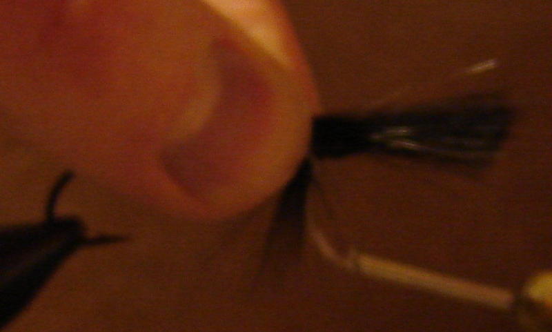 Korpikalle, lukitsen karvanipun ennen leikkaamista paikoilleen muutamalla tiukalla samaan kohtaan kierretyllä lankakierteellä ja vien langan sitten siiven yli muutamalla löyhemmällä kierteellä. Tällöin siipi ei pääse leikattaessa pahemmin muljahtelemaan ja molemmat kädet saa käyttöön: toisella kädellä taivuttaa karvanippua ylös ja toisella kädellä saksii pois ylimääräiset. Pakollinen tämä ei ole mutta mielestäni ihan hyvä niksi ja etenkin silloin, kun käytetään polttoneulaa.