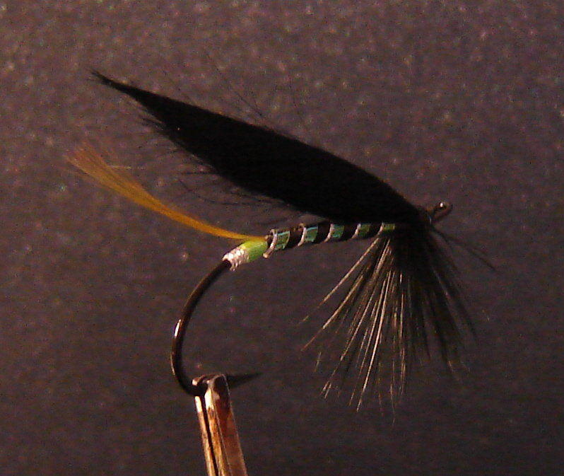 Lähinnä tuon kierteen iidean vuoksi laitoin tämän perhon esille. Mustalla rungolla helmiäinen kierre näyttää varsin mukavalta. Lisäksi se näyttäytyy hieman eri tavoin riippuen valaistuksesta ja ympäristöstä, jota kierre osin heijastaa. Ja kai tänne rasiaan vielä yksi tällainen Green Butt muunnos mahtuu
