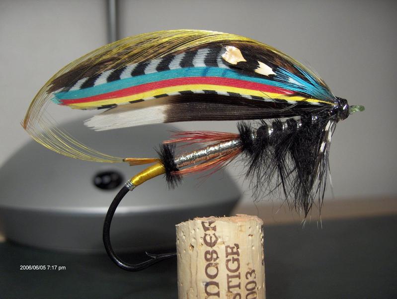 Terve, Waltteri. Komeahan se on tämäkin perho. Lieköhän tuossa reseptissä joitakin puutteita, minusta kun näyttää, että pyrstössä olisi crestin lisäksi myös tukaania, takarungolla lienee hunnut intianvarista (korviketta?) ja eturungolla näyttäisi olevan tuplakierre. Minkä kokoiseen koukkuun olet muuten tuon perhon sitonut? Enpä tiedä, osaisinko sitoa noin hienoa siipeä, vaikka noita klassisia materiaaleja olisikin.