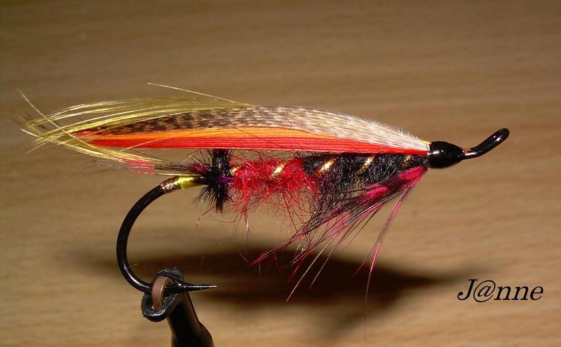 No nyt on Jannen penkistä irronnut komea yksilö. Kaikinpuolin hienoa sidontatyötä. Mielestäni siiven oranssi hanhi luo mielenkiintoisen kontrastin. Ehkä jopa siinä määrin ärsyttävän, että kala ei voi antaa tämän perhon lipua rauhassa ohi.