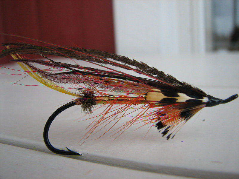 Meille pohjoisen sitojille ja soutelijoille siipi on juuri sopiva, vai miten se oli, siivessä muutama karva, kaikkia kolmea väriä, tai jotain sinne päin. Tässä kun on kalastusprhojen yhteydessä puhuttu Oululaisen perinteen vaalijoista, niin sama jatkuu. Perhosta tulee mieleen Honkavuoren mallit, ilmeisesti johtunee tuosta häkilästä, tippet oli varmaan Honkavuoren suosikkimateriaali, tai ainakin paljon hän sitä perhoissaan käytti. Strutsin kestävyys siivessä hiukan mietityttää, kestääkö kalan pureksinnan. Itse olen joskus miettinyt strutsin käyttöä runkohäkilän korvaajana, mutta en ole vielä uskaltanut sitä tehdä, mutta kohtapa sen teen, samakai se on jos kala tulee, vaikka häkilä hajoaa, saahan noita uusia. Sanopas papalle että panee uintiin. Vuosien päästä on mukava katsella pojan tekemää perhoa, jota on kalat pureskelleet, pankoot sen jälkeen ykkösrasiaan.