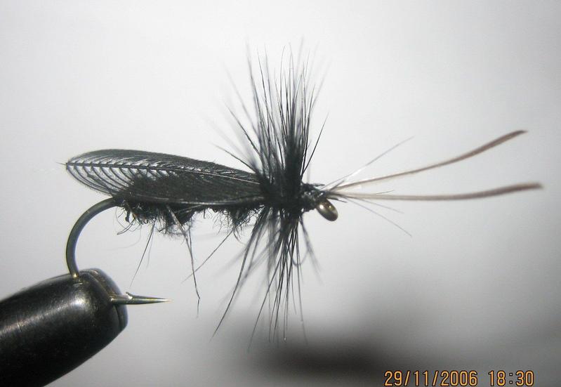 no juu hieno on ja noita värejä voi vaihdella milteinpä mielinmäärin,niin ja mitä tuohon taimeneen tulee niin ihme kyllä,mutta isokin saattaa haksahtaa pieneen(perhoon).itse sain vuos pari sitten 48,5cm taimenen #14 koon Suspender Sedge;llä,minkä ohje löytyy mainitsemasi kirjan sivuilta.