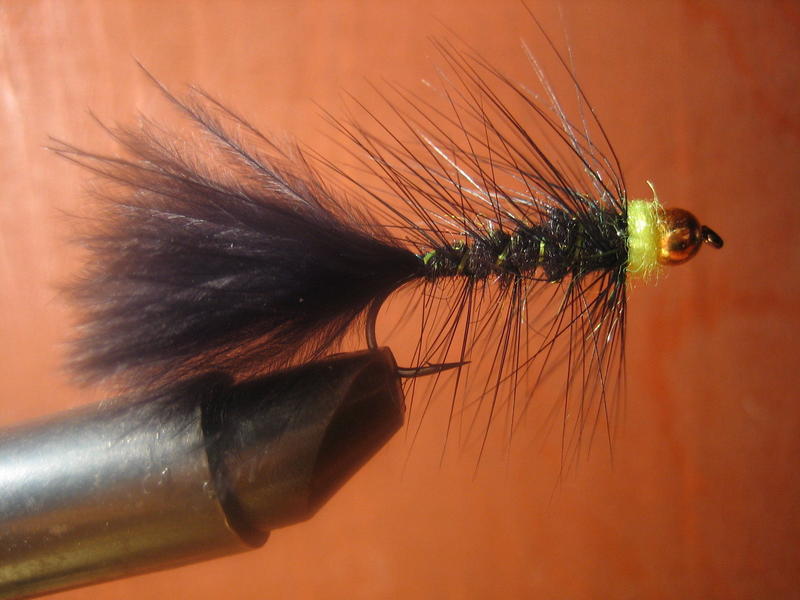 Hyvä väriyhdistelmä! Musta-chartreuse-yhdistelmä antoi hyvin kalaa tänä vuonna. 10-koon Montana kuulalla ja ilman toimi erityisen hyvin. Pääasiassa kirjoa, mutta myös kirkas taimen juhannukseksi tuli. Sidoin itse myös vähän vastaavan liitsin kyseisillä väreillä. Häkilää en tehnyt ja runkokin oli marabouta ja ilman kierrettä, eli menee laiskuuden piikkiin. Silläkin nousi joku hassu pullalohi, mutta toimi kuitenkin. Hyvältä perusperholta näyttää!
