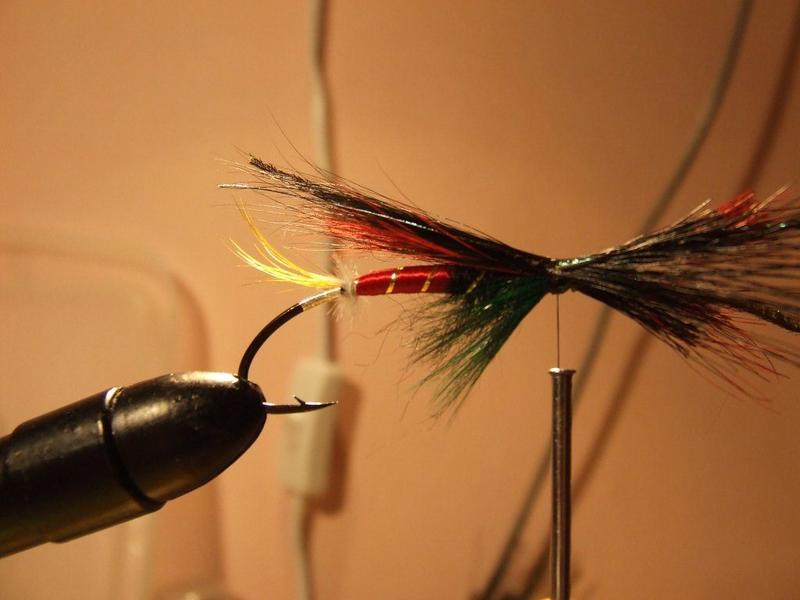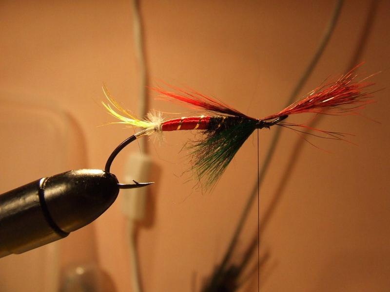 No tämä oli minun jouluaatto perho. Eli jouluaatto yönä sidottu, toisin sanoen jo 25n päivän puolella.. Orava materiaalina yllätti paksuudellaan, jonka ansiosta perhon siipi ja pää epäonnistuivat. Ensimmäisessä kuvassa, perhon päässä on vielä lakkaa, joten näyttää entistä isommalta.. Täytyy vielä sanoa, että teen näemmä mielummin lohareille siivet ketusta, kun oravasta..