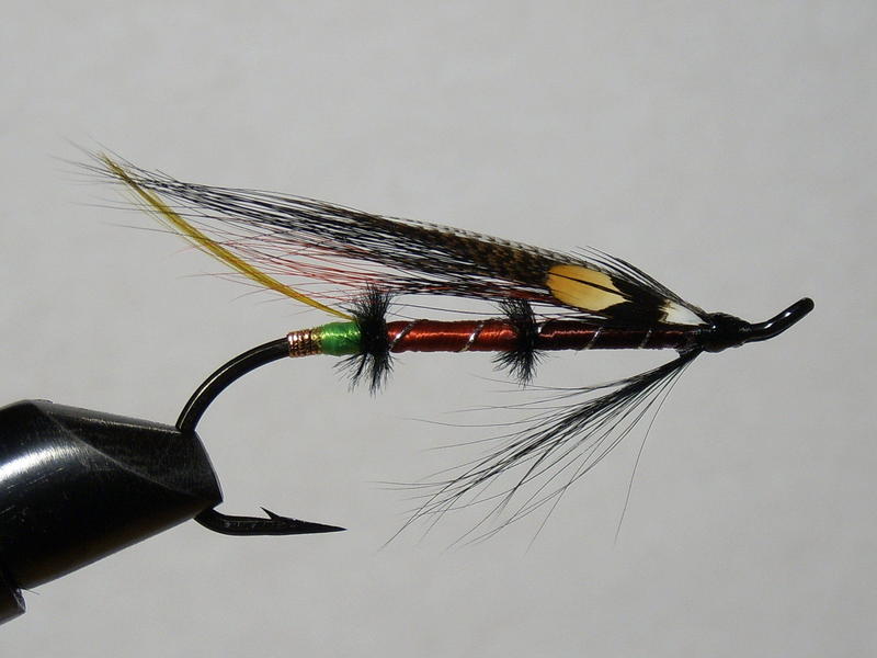 Tällaisella kaksihaarakoukulla koko 4, saatu useita lohia Kuusiniemen väylästä sekä Borssin väylästä heinäkuun yössä. Tein perhoon muutokseksi välivyön. jonka uskon toimivan. Perhon yksinkertaisempi kaksihaaraversio löytyy lohiperhon valintaoppaasta s.23.