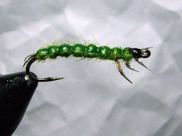 Kiitos kaikille kommenteista. Tässä perhossa yritin jäljitellä mahdollisimman tarkasti, mutta kuitenkin yksinkertaisesti http://www.troutnut.com/specimen/559 tuommoista rhyacophilalarvaa. Selän scud backin olisi kyllä voinut sisäpuolelta tussata hieman tummeman vihreällä tussilla kuin tässä on.