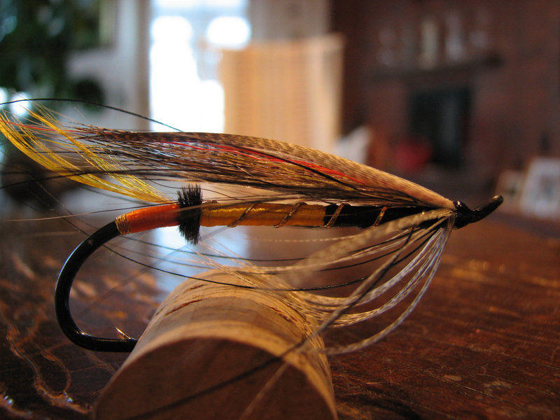 Ylemmissä on kyllä ehkä liian hento/lantamaton siipi noihin paksuihin lohirautoihin nähden. Alle vaikkapa sitä souituperhojen ykkös materiaalie eli bucktailia tai kalkkunaa.. Sitten vois alkaa jo pelaamaan.