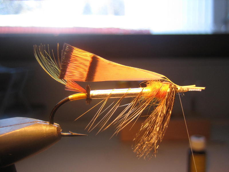 Olen muuten itsekin tekemässä Silver Greytä ja siipi vie minulta kohta hermot. Siivessäni on myös alussiipenä ripaus tippettiä ja lisäksi oranssia oravaa. Nämä istuivat helposti. Naitin elämäni ensimmäisen naitoksen valk., kelt., ja vihreästä hanhesta. Senkin sain istumaan suht` hyvin. Ongelma on seuraavassa kerroksessa. Kultafasaanin pyrstösiikasia laitoin 3 puoleensa sekä lopuksi Gadwall (piruuttani laitoin muuta kuin mallardia). Nämä viimoiset ainekset laitoin niinkuin hanhen päälle. Kysymys kaikille minua viisaammille kuuluukin: missä suhteessa siipimateriaalit pitäisi olla ? Pitääkö ne olla kaikki samassa kerroksessa vai ovatko ne osittain toistensa päällä ?