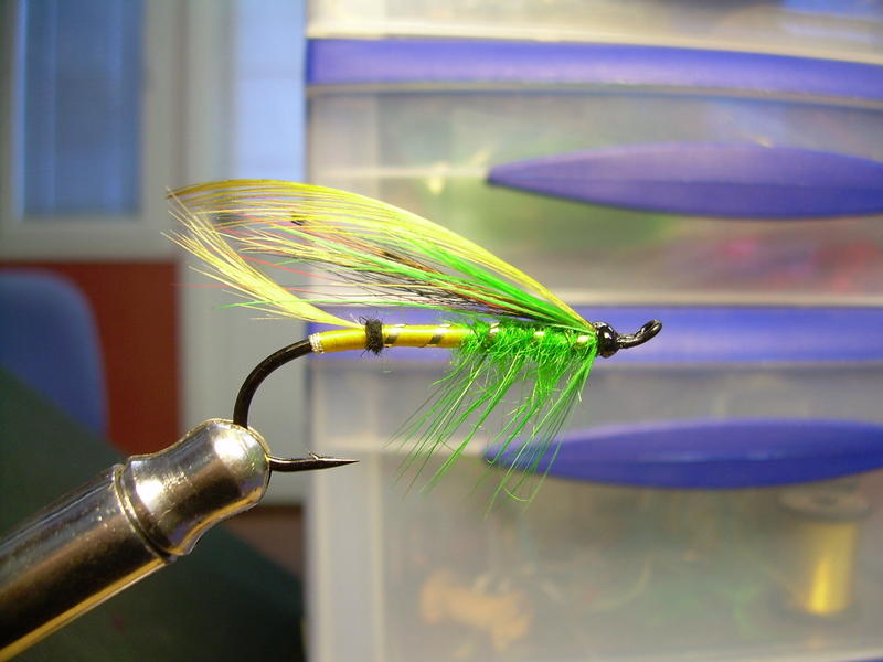 Siististi sidottu heittohighlander. Highlanderiin kuuluu ehdottomasti viidakkokukot ja keltainen kukko häkiläksi tuohon vihreän eteen, ainakin tenolla. Ja tuo perän silkki saisi olla mieluusti kirkkaamman keltaista kuin tuo runkosilkki. Mutta en epäile etteikö tähän napsahtaisi aurinkokelillä.