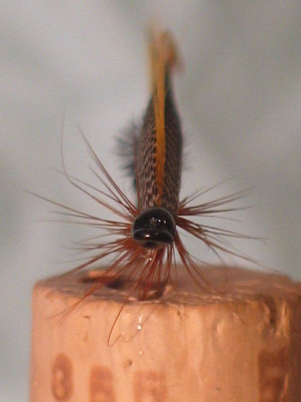 Kilpailija dusty millerille sumuperhoksi? Ulkonäkökin viittaisi sumukalastukseen, koska silloin kalastetaan matalissa vesissä, karien päällä ja aivan rantaviivassa, jos lisäät vielä helmikanaa tai tavia häkilään, niin jo toimii, ainakin uskoisin. Älä lopeta sidontaa, kyllä tämä soutuperho on, mutta olethan sitonut tippetin erillisistä siikasista? Silloin siipi nimittäin toimii sikä sitä tarvitse rannassa hieroa.