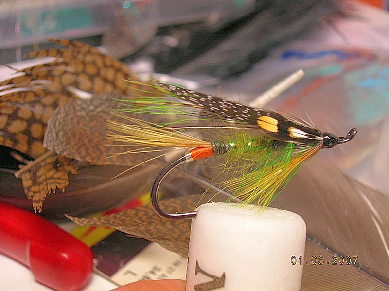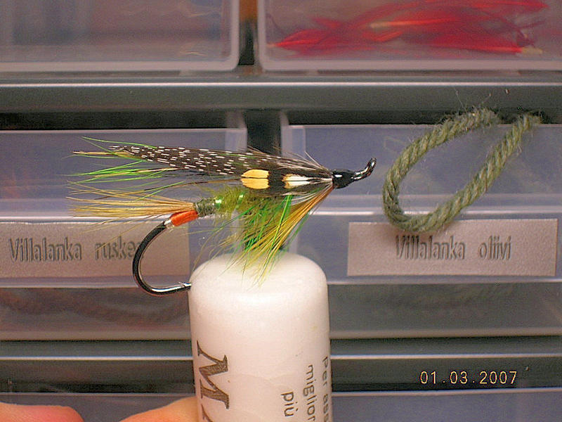 Hieno perho se on.. Itse olen alkanut pitämään villalangoista, etenkin spey perhoissa, joissa pitää saada mahd. ohueksi ja litteäksi se villa.. Eikä pöyhiä&hajottaa kuten yleensä lohiperhoissa..