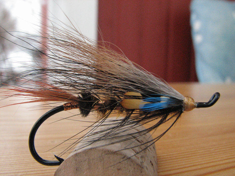 Mutta ajatus on tärkein. Väri sekä materiaali valinnat on varmasti oikeat taimenelle, mutta myös lohelle. Siiven karvat laittaisin toisin päin, oravan elävänä karvana alle, buctail:n ohjaavana sekä pidempänä päälle. Koska olet näyttöjä sidontataidoistasi antanut, on turha alkaa suurempia korjausehdotuksia tarjoamaan.