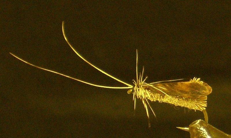 Missäs siinä ne neljännet siivet on, kun en minä huomaa? Meikäläisen silmään oikein hyvän näköinen Caddis. Ainakin tästä kuvakulmasta näyttää, että on hyvin leikattu. Onko minkä kokoiseen koukkuun sidottu?