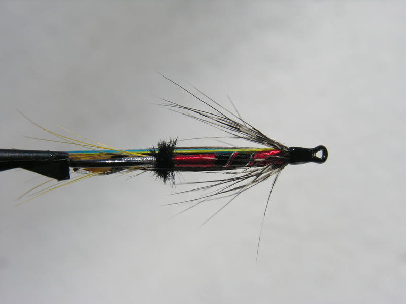 Olisiko Saaristo ollut aikeissa tehdä jonkinlainen Kummeli muunnos, johon on lisätty värillistä siipeä? No tällaisia puna/musta perhoja on hyvä olla ns. joka lähtöön, eli monenlaisia variaatioita, onhan se varmasti käytetyin väriyhdistelmä pilviselle kelille, sadekelille ja yökalastuksessa. Luulen että tämän parhaat kelit on juuri pilvisinä iltoina, mutta en oikein usko vesisateelle. Elokuulle kojamojahtiin kunhan helan ja kierteen vaihtaa kupariin tai kultaan.