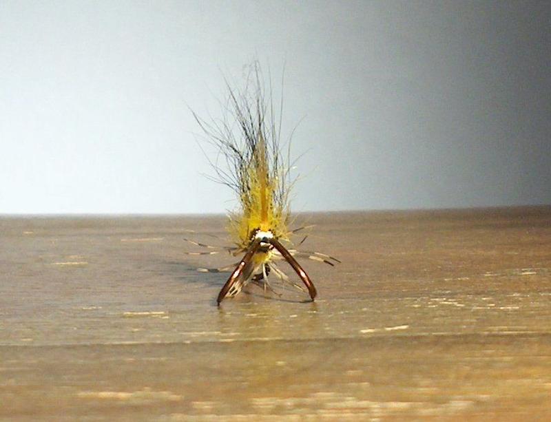 Ongelma-ajan perhoja, eli silloin kun vesi on matalalla ja veden lämpötila yli 18 astetta ja aurinkoinen keli. Tällaista kannattaa kokeilla siihen aikaan myöskin yökalastuksessa kirkkaina öinä. Siististi sidottu perus perho. Minä olen taas sitä koulukuntaa, joka sitoo siiven juuri tällä lailla, eli pitkä päälle ja lyhin alle. Muokataan tuota lämpöä, siis yli 15 astetta (18 painovirhe)