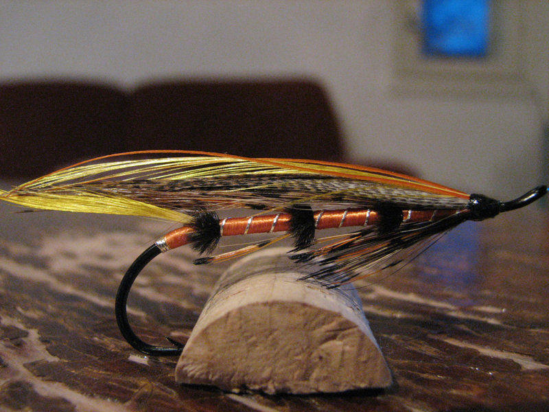 Voi muuten ollakin parempi meritaimenelle kuin lohelle, vaikkakin oma kutina tästä on Kymille toimivaksi lohellekin. Sidoin 64:sta punaisen version, runko punaista silkkiä, hunnut punaiset tippetit, mutta siipi tummempana.