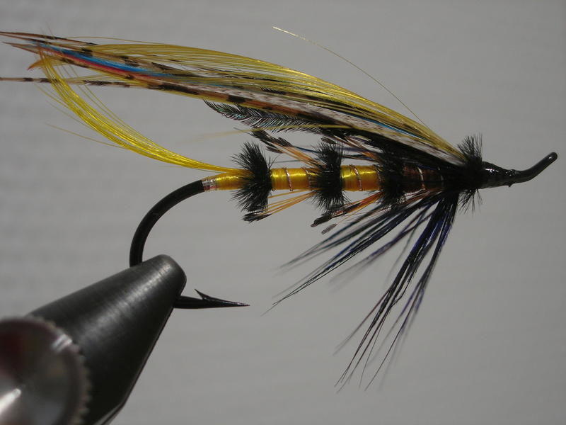 Tämä on hyvä, kelpaa Kymillekin. Vaikuttaa minun silmään oivalle soutuperholle. Eräänlainen Jock Scott tämäkin on, vaikka onkin Saariston kehittämä. Hunnut on sopivan maltillisella sikasmäärällä sidotut.