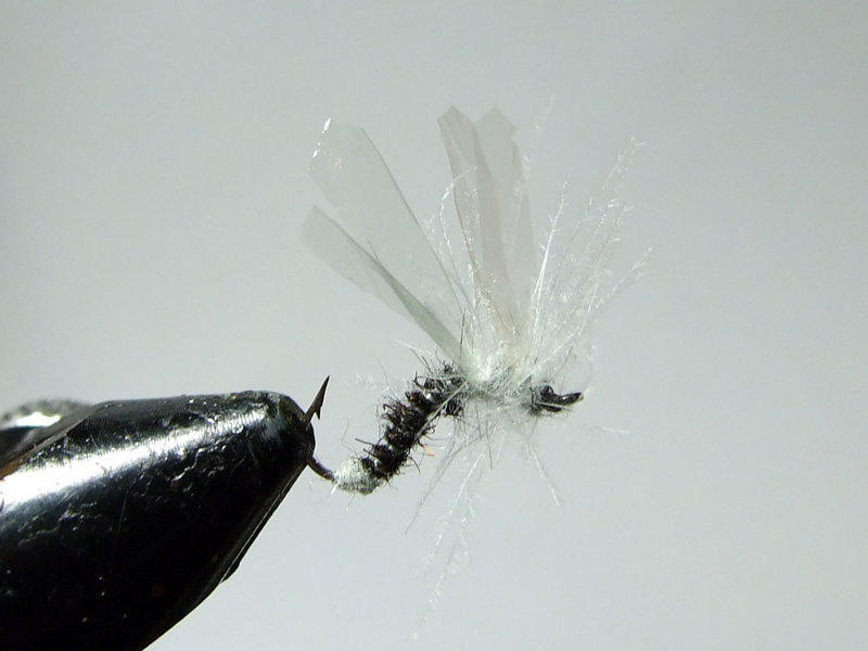 Dippaamalla munivan koskikorennon jäljitelmä. Toisin kuin vesiperhoset, koskikorennot ei muni parvissa, joten pinnalla yksin räpistelevä koskikorento saa aikaan kilpailua ruokailevien kalojen kesken.