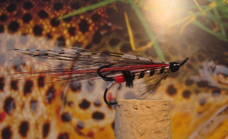 Kyllähän tämäkin voi vielä toimia loppukaudesta, mutta kannattaisi tehdä tälle kaveri, jossa kierre on kultaa tai kuparia. Nyt kun vesi on Tenossa normaalia korkeammalla, niin kulta ja kupari toimii paremmin. Lisäksi asentokaloja ajatellen silmät mukaan. Muutenhan tämä on perustyökaluja lohelle. Siipi on hyvän mittainen elokuun kaloille, joskin se saisi olla tähän aikaan hieman tuuheampi.