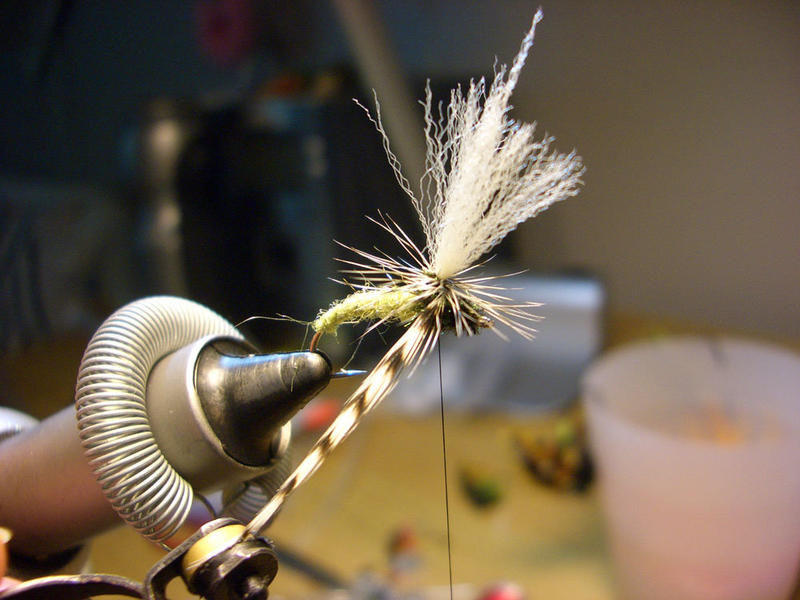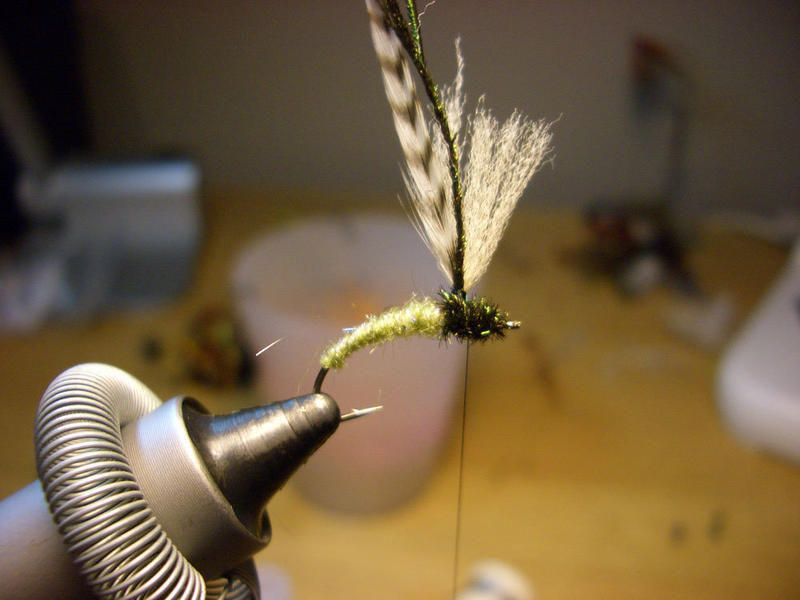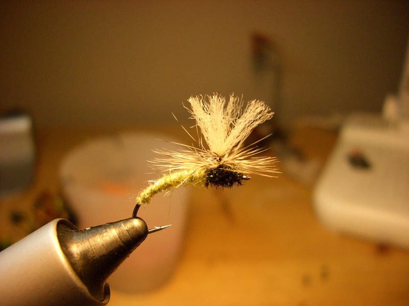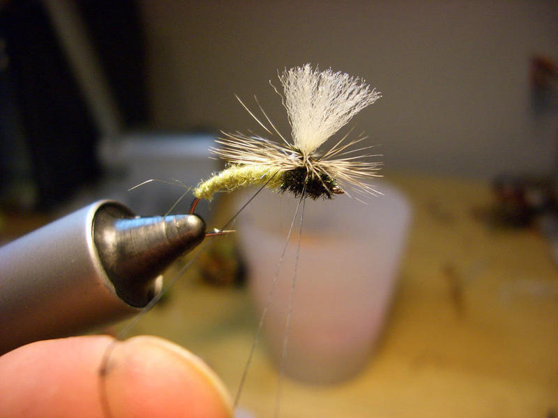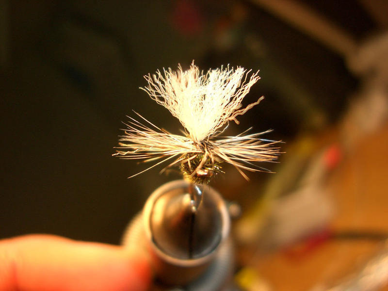 Kiitos tämän vaihevaiheelta perhon tekijälle. Näistä todellakin on hyötyä aloittelijoille, kuten minulle. Tekasin tuon ohjeen mukaan tämän näköisen härpäkkeen. Siipi taitaa olla pahasti liian lyhyt?, kun ei löytynyt muuta materiaalia siihen kuin tupakan filtteri.