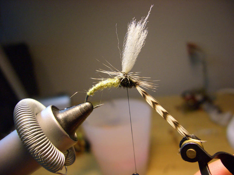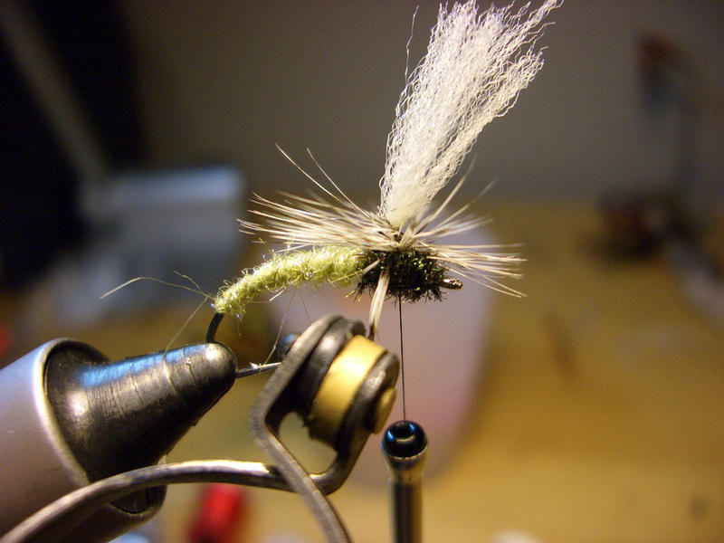 Kyllä tuo on hyvän näkönen ja Hans van Klinken sanoo joka on kehittänyt perhon ,että takaruumiin pitäisi upota välittömästi ja jäädä kellumaan häkilän ja siiven varaan. Koukusta sen verran että sen voi tehdä myös itse taivuttamalla.