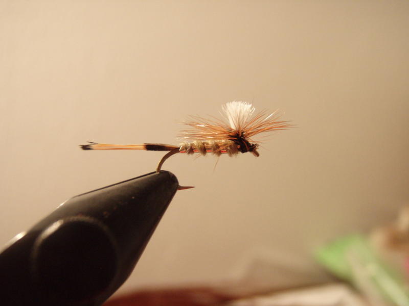 Ihan nätisti on perho sidottu. Itse ehkä tekisin hieman toisella tavalla. Pyrstöön voisi pistää jotain ohkasemaa kamaa, kierteenä vois käyttää jotain kevyempää ja siipi voisi olla pidempi.