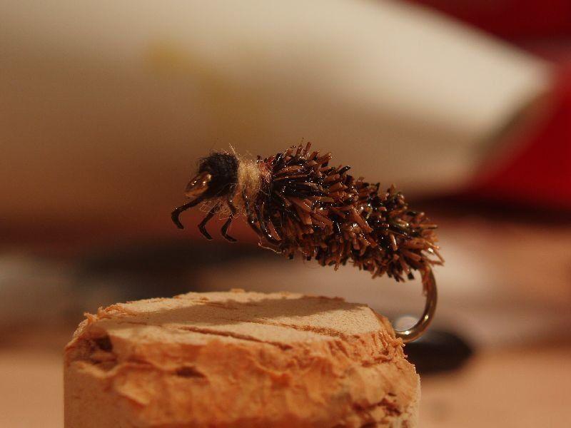 Täytyypä tarkentaa tuota kopanteko-ohjetta. Eli olen dubbinghyrrällä tehnyt sidontalangasta lenkin ja lenkin väliin olen asetellut peurankarvasilppua. Sitten olen pistänyt dubbinghyrrän pyörimään ja lopulta pyörittänyt syntyneen karvasotkun koukun ympärille.