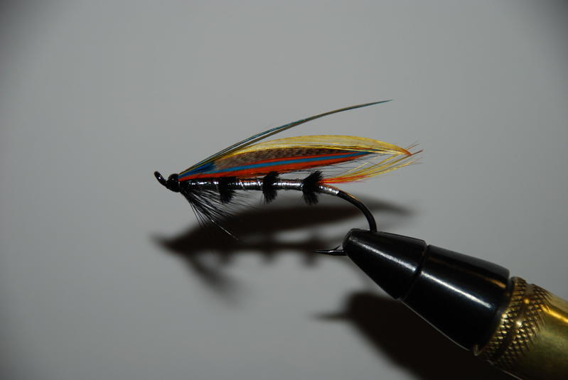 Tällainen lohiperho kalastukseen. Kehittävää palautetta yms. otetaan mielellään vastaan. Siipi taisi mennä ''pykälän'' liian matalaksi vai? Pahoittelen edelleen huonoa kuvaa.