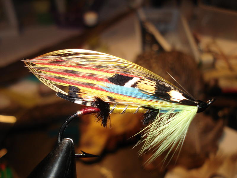 Mitä hienoin perho,mutta jos pitää jotain natista,niin pää enemmän taakse.Mahtuu solmu paremmin,vaikka lenkillä itsekkin suurimman osan lohiperhoista uitan.Edellä oleviin kommentteihin ei lisättävää.Kaunis ja kalastavan tuntuinen peli ja joskus Juhannuksen aikaan tarjoilisin päivällä jos aurinkoinen kurkkisi...