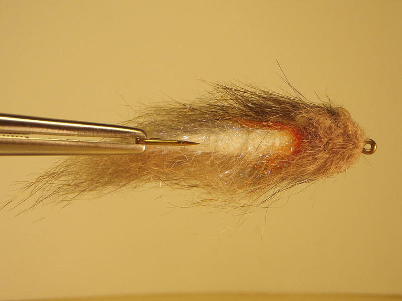 Perho on komea ja varmasti kalastava. Pään voi tehdä ihan ronskisti niinkin että kiinnittää karvan eteen ja jättää ylimääräiset eteen, koska vedessä opossumi huovuttuu.
