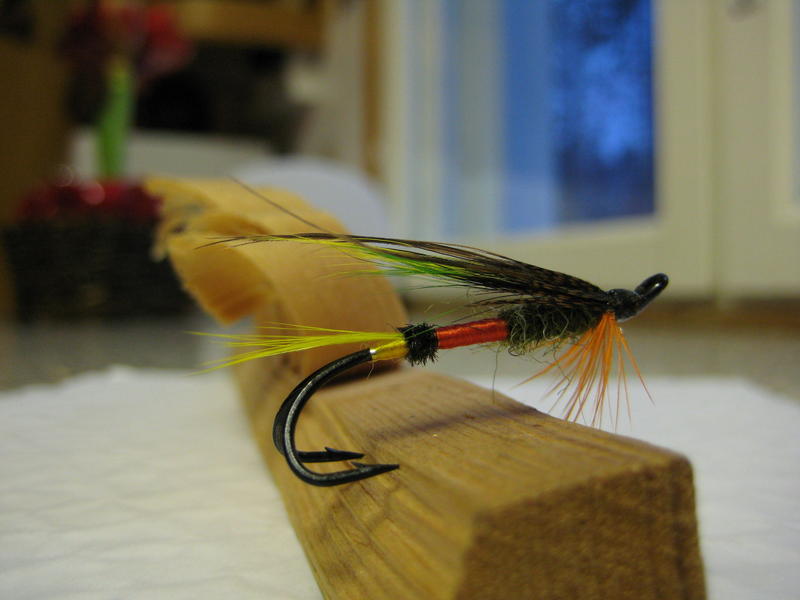 Sateella ehdottelisin ja nousukalalle.Tuota rungon etuosaa jos maltat harjailla ja nyppiä antron siikasia varovasti niin ulkonäkö muuttuu olennaisesti,varsinkin jos jätät oranssin häkilän pois ja sekoitat antronin sekaan etuosalle oranssia hyljettä(tai vaikkapa borssen mainitsemia värejä).Siipi on vähän "laihialainen",mutta niinhän monissa ottiperhoissa onkin.Monien erilaisten ottivärien perho on usein "Jokeri".Siitä ei välttämättä tiedä ovatko sinällään hyvät värit oikeassa paikassa lohen mielestä.Ainakin minulla ja monilla tuntemillani on sellaisista tullut yhden kesän tai kuukauden hittipelejä ja sitten lakkaavat toimimasta.Seuraavana kautena niitä vielä uitellaan,mutta sitten taas jäävät "jokeri"-perhoiksi kun taas uudet muotiperhot pettävät tai usko kalan tuloon muuten horjuu.Annahan perhollesi mahdollisuus päteä,saattaa se muulloinkin toimia kuin e.m.olosuhteissa.Ihan perus-Coachmannillakin on saatu "hailanterin"-kelillä.Lohi on kumma eläjä