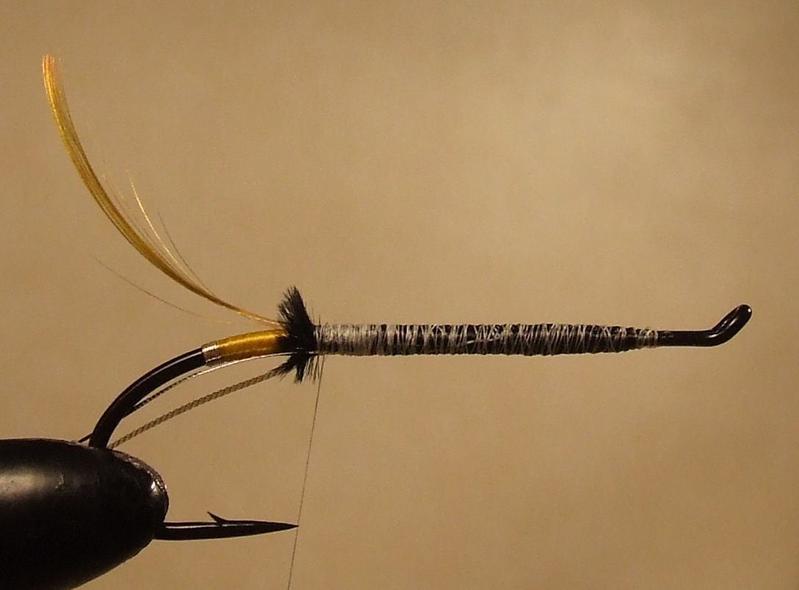 Evotec: Tämän kokoluokan lohiperhojen kurkkuhäkilän pitää olla jo aika pitkää --> ruoto on aika paksu ja tekee kynnyksen. Pienellä kikkailulla sen saa siitä sen verran pieneksi, että siihen suoraksi tippetit saa, mutta että pysyvästi kattolaskuiseksi? Taitaa jäädä minulta tekemättä. Tässähän tuo tippet on aseteltu melkeinpä aivan miten sattuu, kun tuo tippet oli jotain jämäkamaa. Kyllä tuo ainakin minulle passaa tuo tippettien viimeinen malli, jos tuo suuntaa raameihin..