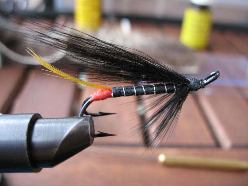 Kuten borsse sanoikin,ovat nämä mallit peruspihviä lohelle yöllä.Myös päivällä voi kokeilla versiota,jossa kierre on leveästä tinselistä 2-3 kierrosta(perhon koon mukaan tinselin leveys ja kierteet).Siipeen pari kuitua,siis vain 2-4 kpl punaista Angelhairia.Liika kimalle pilaa perhon.Kaverini on saanut sellaisella älyttömästi tittejä soutaen,mutta eipä kukaan kiellä heittoversiota tekemästä.Siiven voi tehdä noin kahdestakin nipusta,mutta mielestäni aina parempi tulee jos tekee kolmesta,jopa neljästäkin.Silloin on muistettava jättää ne sidontalangan "varmistuskierrokset" " pois,lakkaa tai pikaliimaa langalle ja 2 kierrosta/hyvin aseteltu nippu.Alimman(oma tapa)tai ylimmän nipun voi sitoa taittaen niin elo ei kun paranee.Kireitä