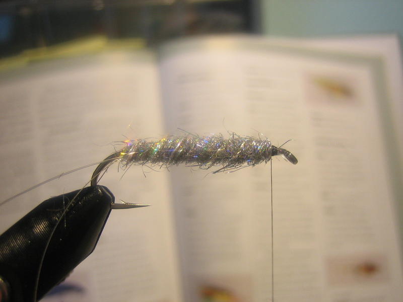 Näin voi käyttää paksuakin tinselikierrettä, eikä tarvitse pelätä että kierteen alle jää tuota kaninkarvaa. Monofiili riittää kyllä siiven kiinnitykseen.