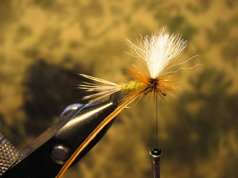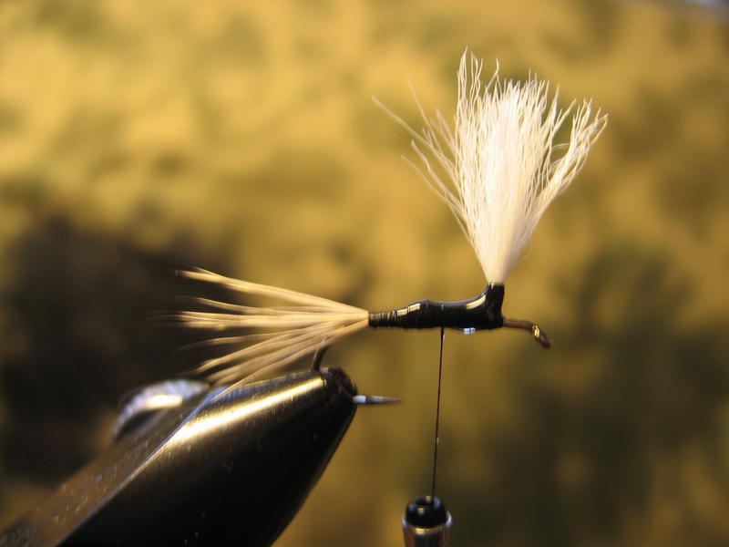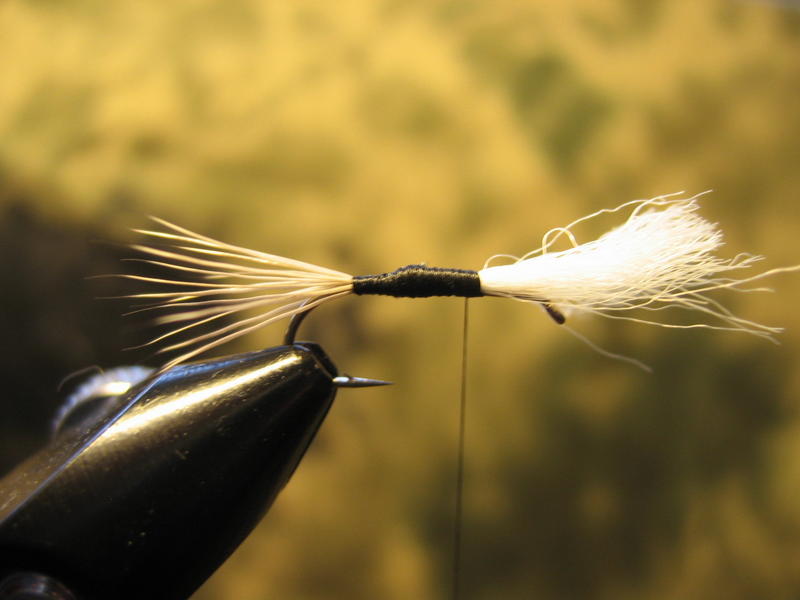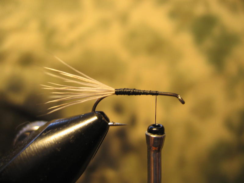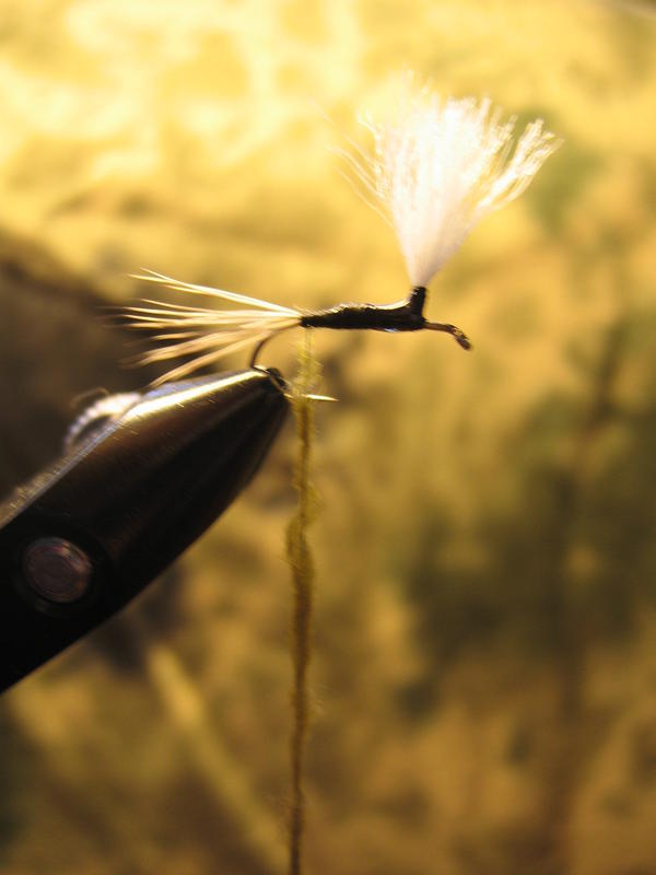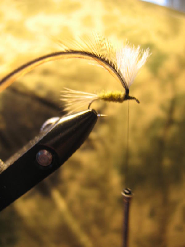 Itse myös hylderin kanssa samalla kannalla. Saat helpommin tuon thoraxin tehtyä kun teet sen ennen häkilän kiertoa ja hommaat häkilän tekemiseen spiderweppiä tai muuta ohutta lankaa jolla sen saa tehtyä todella huomaamattomaksi. Toinen mikä itsellä on helpottanut kartioidun rungon tekoa (klinkhåmer) niin leikkaa se ylimääräinen siipi valmiiksi kartioidusti niin sinun ei tarvitse kartioida sitä dubbingilla/sidontalangalla ja saat näin rungosta kevyemmän ja ehkä vähän kelluvamman.