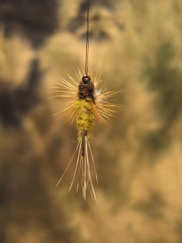 Ehkä ruumis saisi olla ohuempi ja siipi harvempi. Siiven voi myös kiinnittää keskeltä ja taittaa ylös, sitten kiertää lankaa siiven tyvien/koukun ympäri.