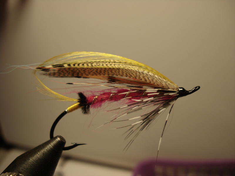 Aivan hyvin olet tuon sitonut. Se mitä tuossa voisi muuttaa on perhon aloituskohta, tuossa koukussa se olisi (kuvan perhossa) jatkeen puolivälin kohdalla. Yleistäen spey-koukulla rungon aloitus on lähempänä runkolangan suoraa osaa, ainakin perho olisi katsojan silmälle tasapainoisemman näköinen.