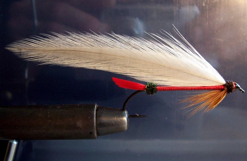 Kamera on kuivattu ja nymfi-tehdas piti saada hetkeksi taukoamaan. Muistikuva Carrie Stevensin 10x koukkujen omistuksesta johti tähän, kyseisiä koukkuja ei sitten kuitenkaan löytynytkään. Lähinnä silkkirunko harjoitus, siivenkin sidoin yksitellen, enkä ensin nipuksi kuten myös on tapana. Profiili ylhäältä päin on kuitenkin nätti. Häkilämateriaali ei olut paras mahdollinen, lisää laatua ja valikoimaa sidontamateriaaleihin. Lisäsin herlin eteenkin, mielestäni se kuuluu Royal Coachmaniin, vaikkei sitä mallina käyttämässäni versiossa ollutkaan.